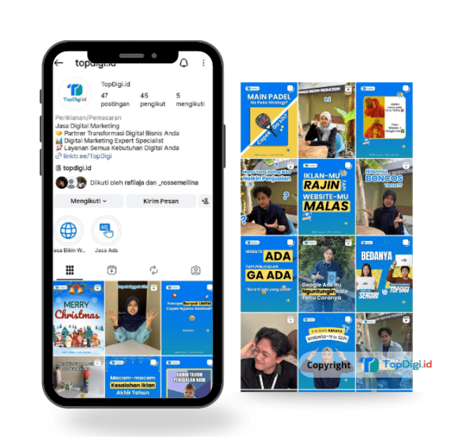 TopDigi.id memberikan Solusi layanan Digital Marketing & Website professional, mulai dari Google Ads, Meta Ads, TikTok Ads, sosial media, website, dan marketplace kami kelola untuk membantu bisnis menjangkau audiens yang tepat dan meningkatkan penjualan